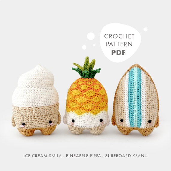 Lalylala Hakelanleitung Sommer Amigurumi Ananas Surfbrett Etsy Osterreich